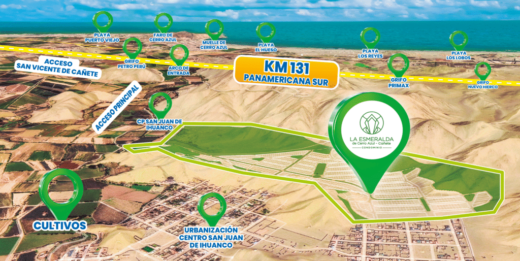 La Esmeralda de Cerro Azul se ubica al sur de Lima en Cañete, a la altura del Km 131 de la Panamericana Sur.